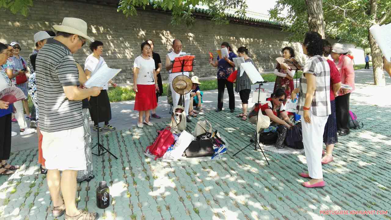 Centenas de pessoas se juntam diariamente no parque do Templo do Céu, na cidade de Beijing, para dançar, cantar, exercitar o corpo, praticar Tai Chi e fazer novas amizades. (Xinhuanet)