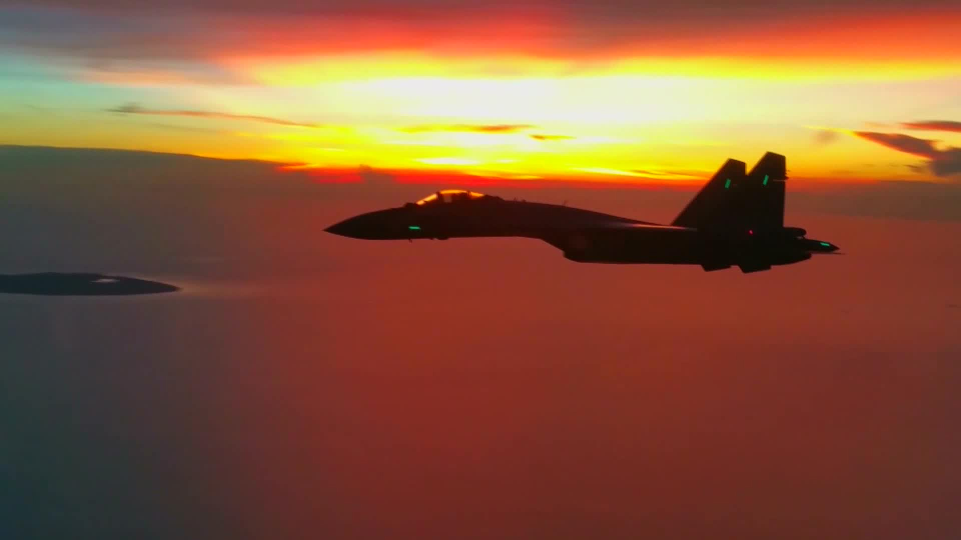 A foto de arquivo de um vídeo mostra que caças Su-35 estão em uma patrulha. A China enviou Su-35 para uma missão de patrulha de combate conjunta na área do Mar do Sul da China, de acordo com a força aérea do Exército de Libertação Popular (ELP) em 7 de fevereiro de 2018. (Xinhua)
