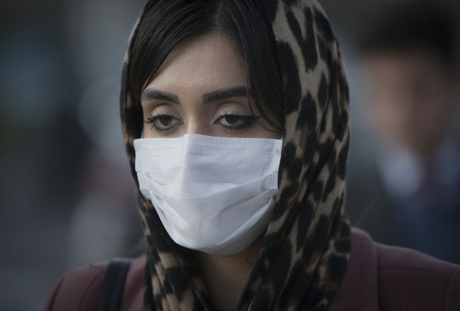 Uma mulher com máscara anda na rua em meio ao surto do novo coronavírus em Teerã, Irã, em 2 de março de 2020. Nesse dia, o país divulgou que 1.051 pessoas são infectados com o novo coronavírus, e 66 dos quais morreram. (Ahmad Halabisaz/Xinhua)