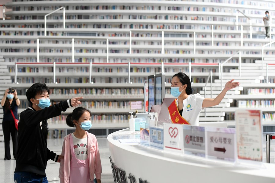 As pessoas visitam a Biblioteca da Nova Área de Binhai em Tianjin, norte da China, em 12 de 2020. (Zhao Zishuo/Xinhua)