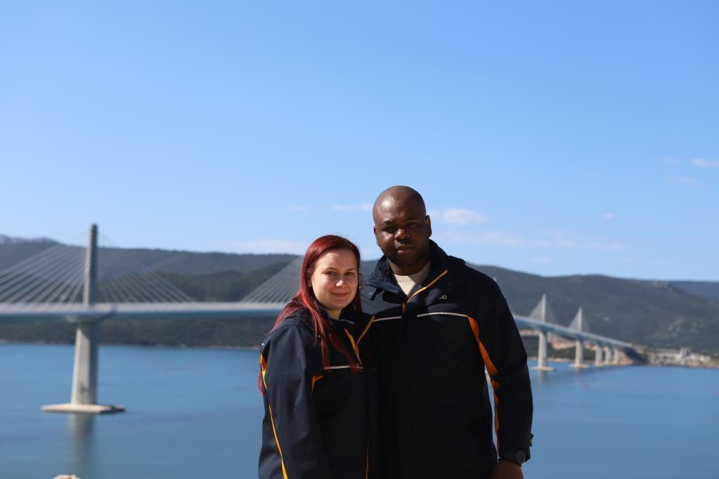 A croata Ana Vulic e seu marido Talman Damtare, natural do Togo na África, são ambos funcionários do projeto da ponte. Ana disse que graças à China, ela e o marido se conheceram e se apaixonaram. A Ponte Peljesac permitiu que eles trabalhassem juntos e vissem o trabalho árduo e a dedicação dos construtores chineses.