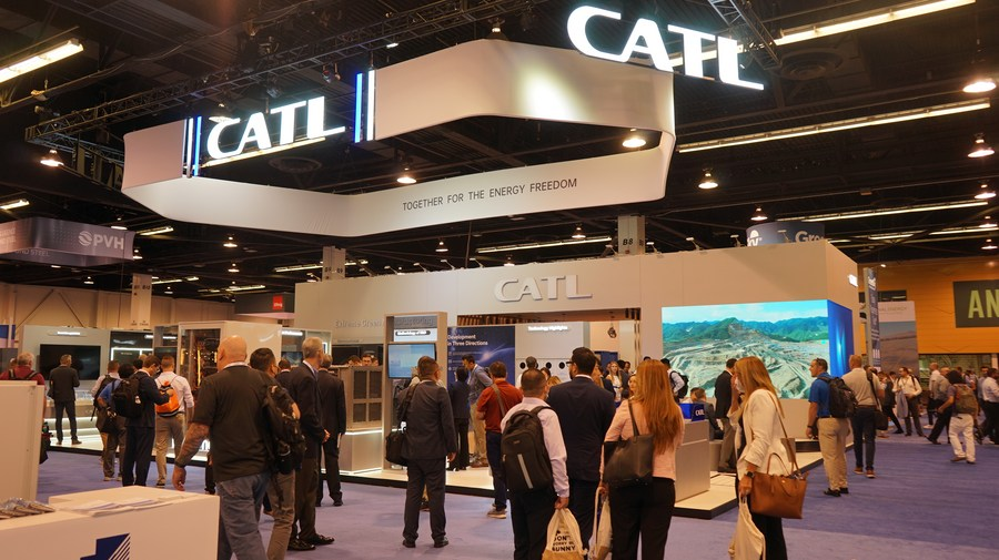A CATL está entre as empresas chinesas que buscam oportunidades na principal feira de energia limpa, denominada "RE+ 2022". Mais de 80 expositores estiveram no salão de exposições no Anaheim Convention Center, no sul da Califórnia.
