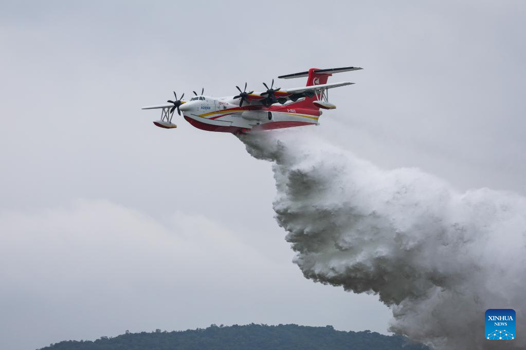 A aeronave AG600M, desenvolvida independentemente pela Aviation Industry Corporation of China para atender às missões de resgate de emergência do país, demonstrou ao público sua função de decolagem a partir de água.