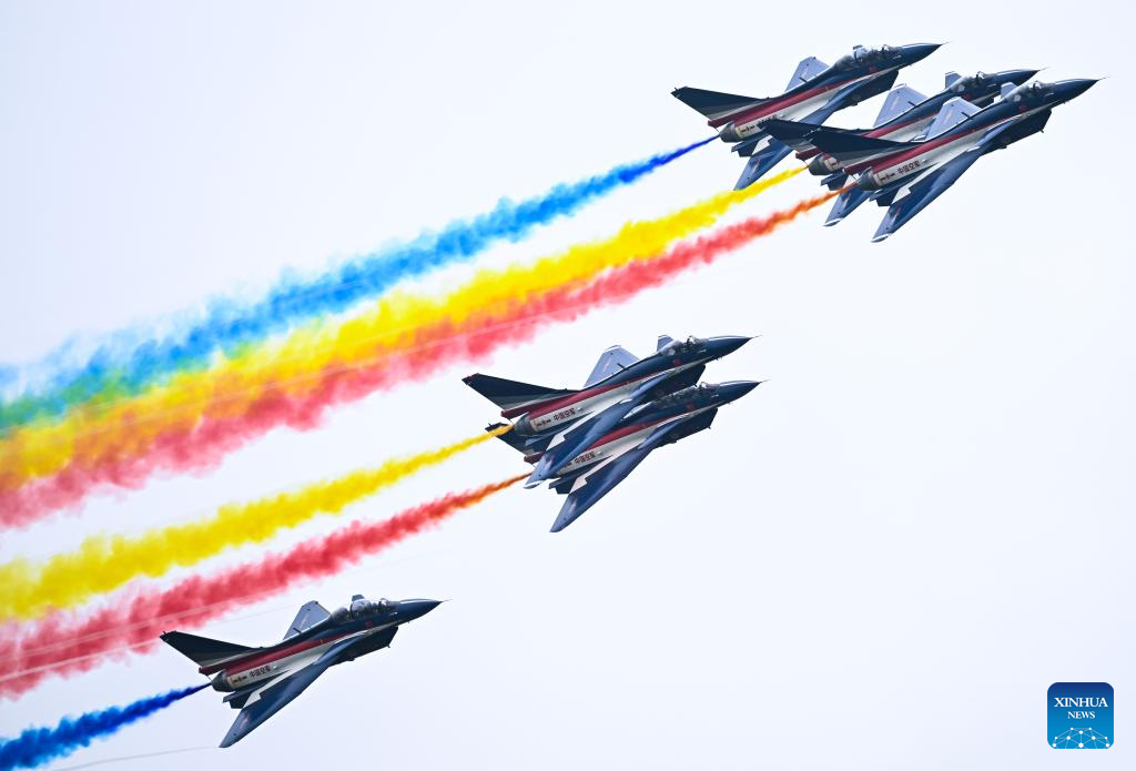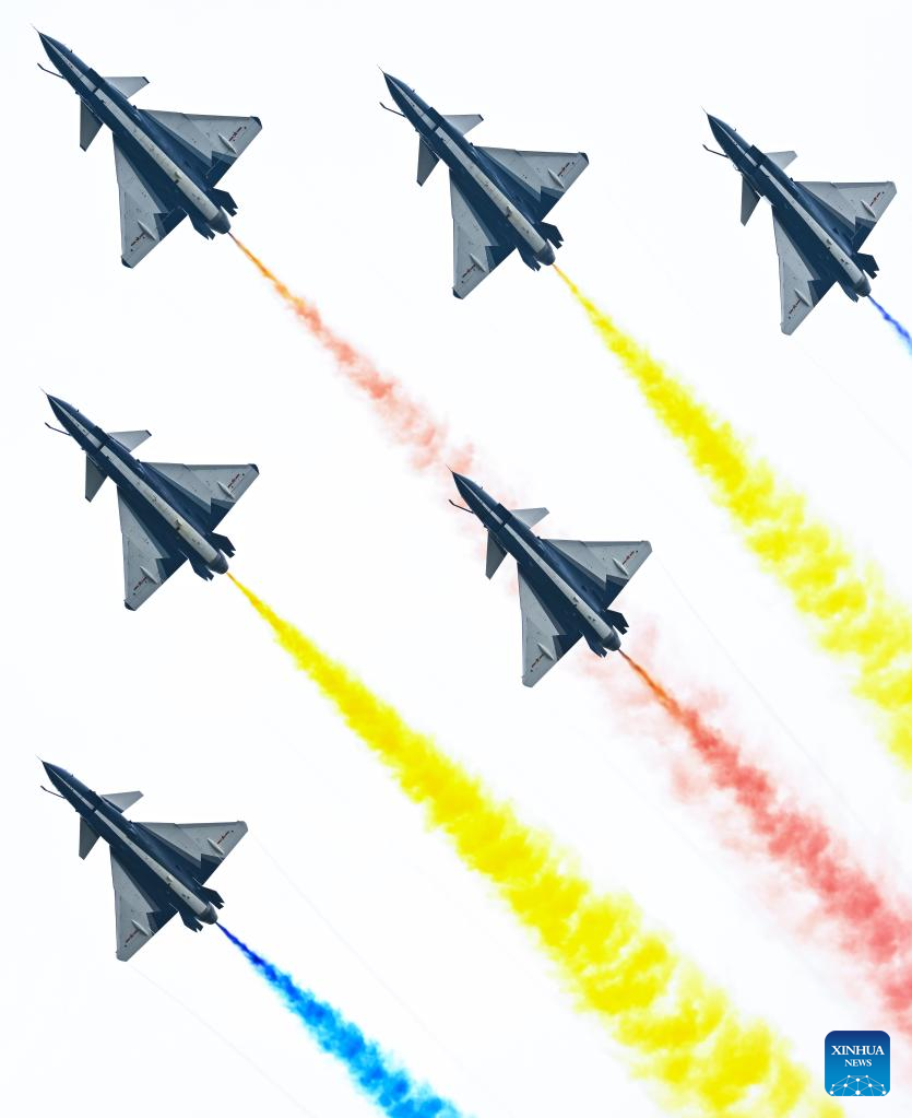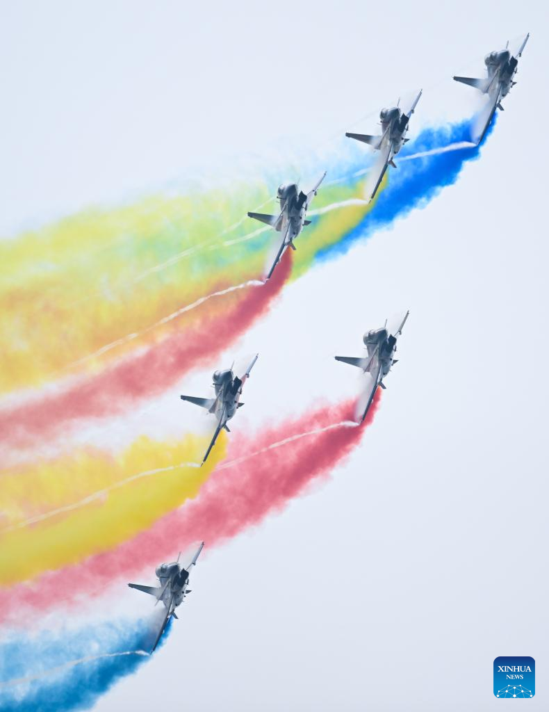 Uma variedade de veículos aéreos chineses se apresentou na cerimônia de abertura, incluindo a aeronave anfíbia AG600M de combate a incêndios, o avião-tanque YU-20, os caças furtivos J-20 e o primeiro jato chinês de grande porte, o C919.