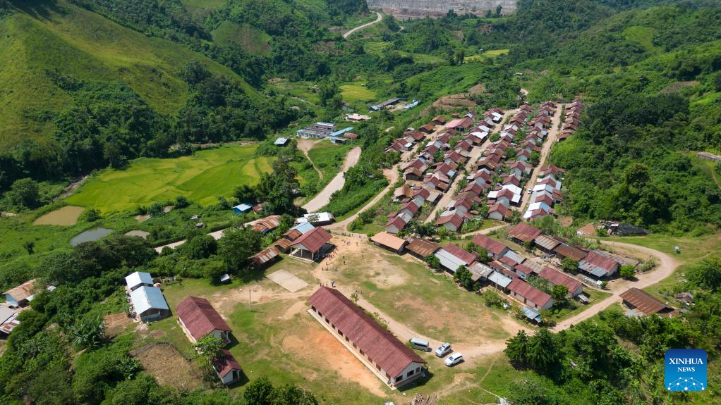 Foto aérea tirada em 27 de setembro de 2022 mostra a nova vila de reassentamento perto da usina hidrelétrica Nam Ou 7 do projeto hidrelétrico em cascata do rio Nam Ou, na província de Phongsaly, no norte do Laos. O projeto hidrelétrico da cascata do rio Nam Ou, investido e construído pela Power Construction Corporation of China (PowerChina), trouxe oportunidades de desenvolvimento para as regiões montanhosas remotas no norte do Laos. (Foto por Kaikeo Saiyasane/Xinhua)