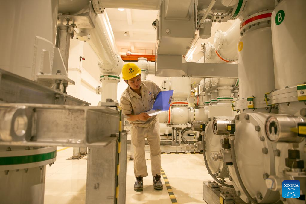 Um funcionário da PowerChina trabalha na usina hidrelétrica Nam Ou 7 do projeto hidrelétrico em cascata do rio Nam Ou, na província de Phongsaly, no norte do Laos, em 27 de setembro de 2022. O projeto hidrelétrico da cascata do rio Nam Ou foi investido e construído pela Power Construction Corporation da China (PowerChina) trouxe oportunidades de desenvolvimento para as remotas regiões montanhosas no norte do Laos. (Foto por Kaikeo Saiyasane/Xinhua)