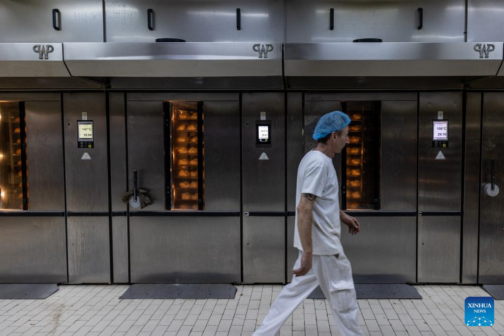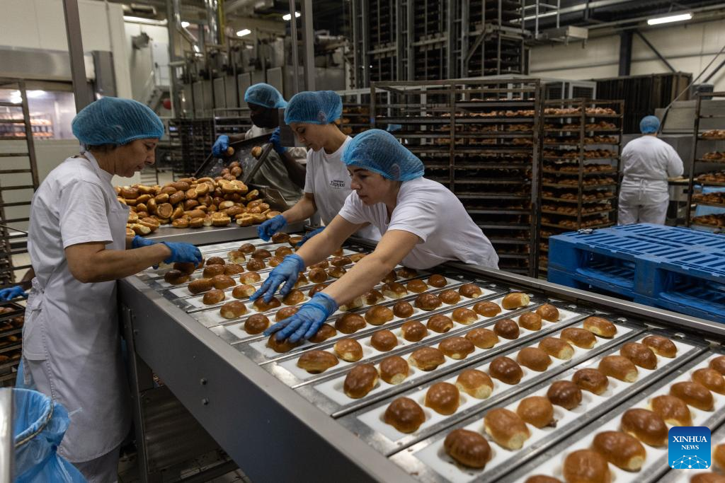Funcionários trabalham na fábrica da Stergiou Family S.A. em Acharnes, um subúrbio de Atenas, Grécia, em 29 de novembro de 2022. Diante do aumento das contas de eletricidade e gás natural, as empresas e famílias gregas estão recorrendo em massa à energia fotovoltaica este ano para lidar com a crise energética em curso. (Foto por Lefteris Partsalis/Xinhua)