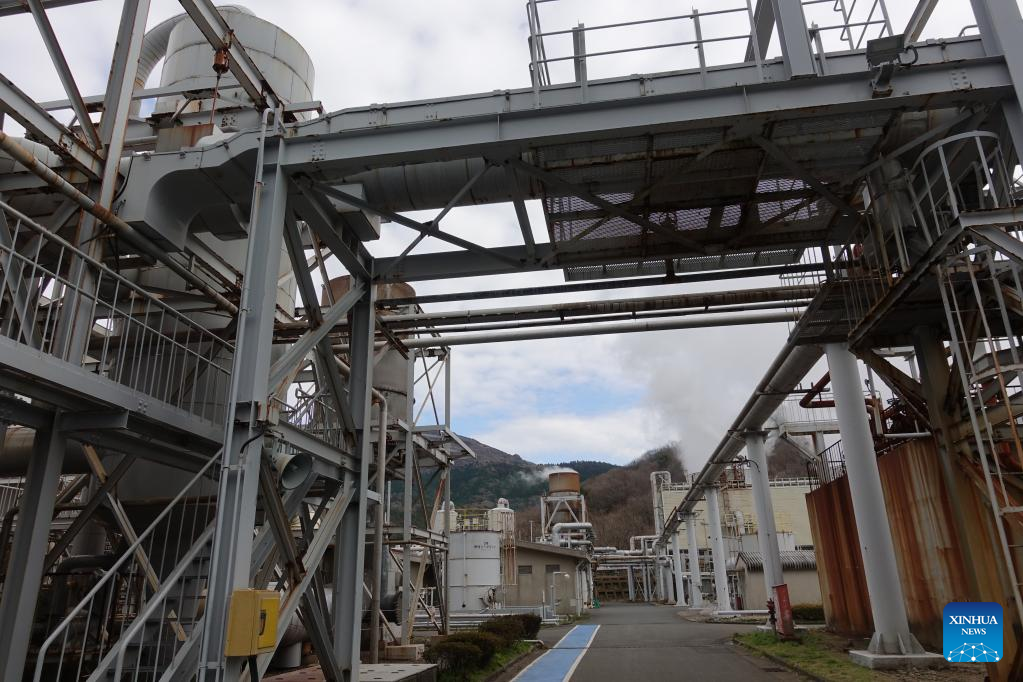 Foto tirada em 9 de dezembro de 2022 mostra a Usina Geotérmica de Hatchobaru da Kyushu Electric Power Company, a maior usina geotérmica do Japão com capacidade total instalada de 110.000 quilowatts, na província de Oita, Japão. A prefeitura japonesa de Oita, famosa por fontes termais, está avançando a todo vapor no desenvolvimento de energia geotérmica, já que o país pretende se tornar neutro em carbono até 2050. (Xinhua/Zhang Yiyi)