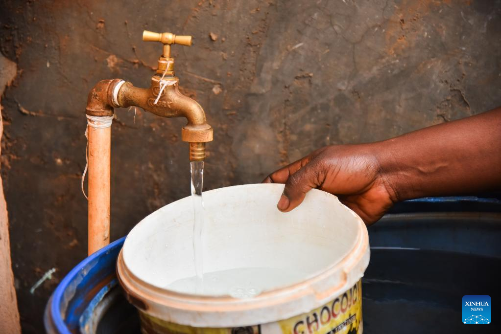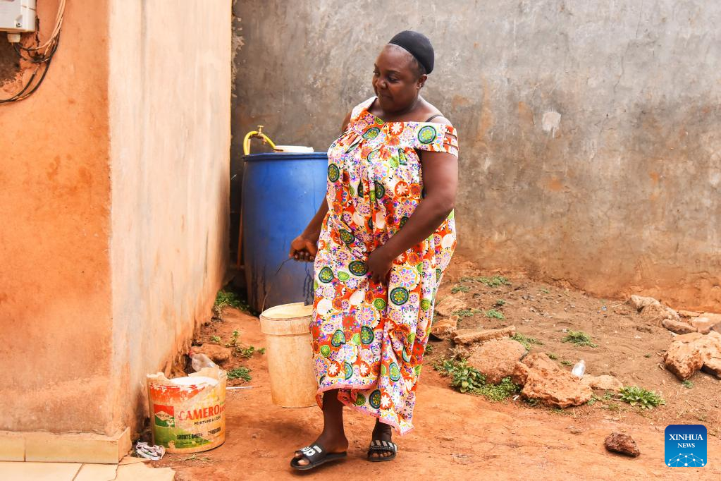 Carine Nem tira água da torneira em Bafoussam, Camarões, em 2 de março de 2023. (Xinhua/Kepseu)