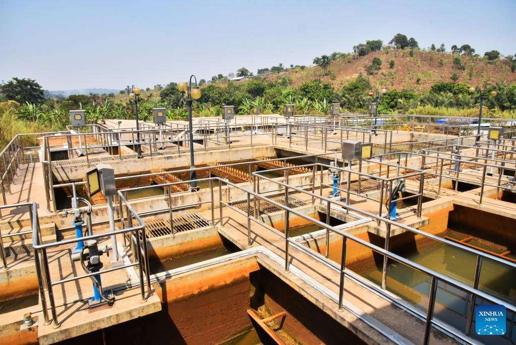 Foto tirada em 2 de março de 2023 mostra diversas etapas do tratamento de água na estação de tratamento de água em Bafoussam, Camarões. (Xinhua/Kepseu)