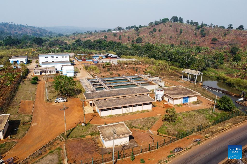 Foto aérea tirada em 2 de março de 2023 mostra uma vista da estação de tratamento de água em Bafoussam, Camarões. (Xinhua/Kepseu)