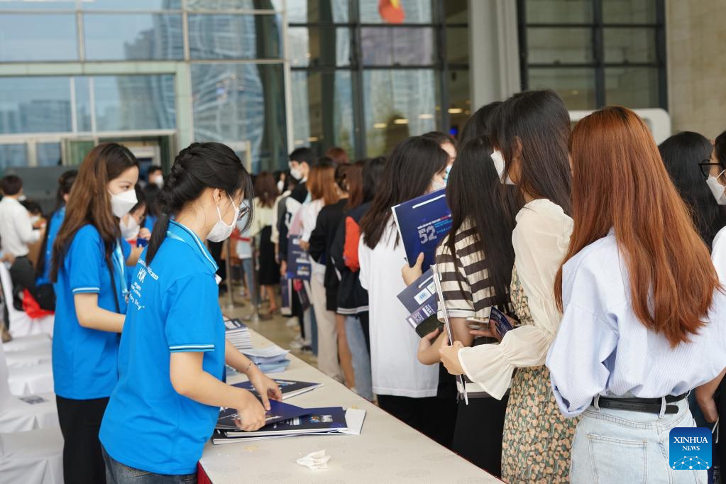 No seminário, representantes de 52 universidades chinesas responderam a perguntas de estudantes vietnamitas e seus pais sobre programas de graduação e pós-graduação na China e bolsas de estudo relevantes.