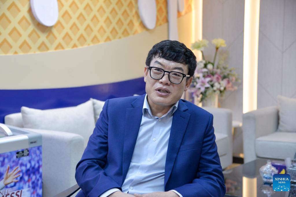 Wang Jiacheng, CEO do Grupo Aice, fala à Xinhua em entrevista em Jacarta, Indonésia, no dia 19 de setembro de 2023. Vivendo nos trópicos, o povo indonésio sofre com o clima escaldante. Aice, marca de sorvete famosa no país, refresca e traz alegria. (Xinhua/Xu Qin)