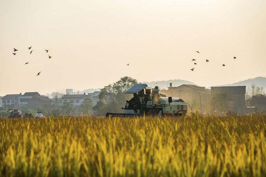 Campo de arroz no distrito de Shuangfeng, na cidade de Loudi, Província de Hunan, centro da China, em 29 de outubro de 2023. (Foto por Li Jianxin/Xinhua)