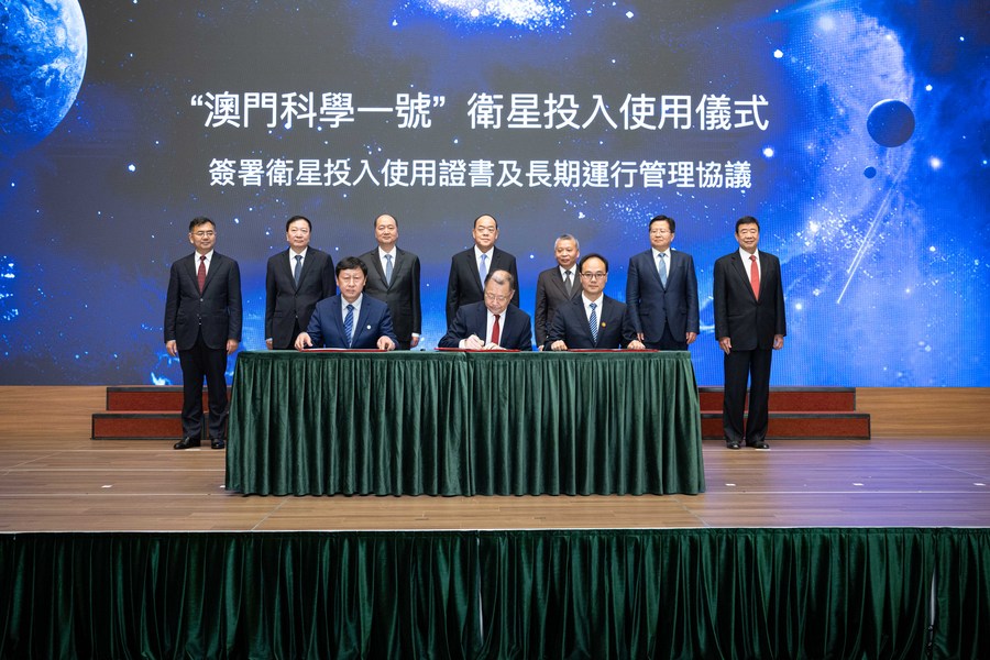 Macau, 29 nov (Xinhua) -- Realizou-se na terça-feira uma cerimônia para a entrada oficialmente em funcionamento dos satélites de exploração espacial "Macao Science 1" na Região Administrativa Especial de Macau (RAEM), sul da China.