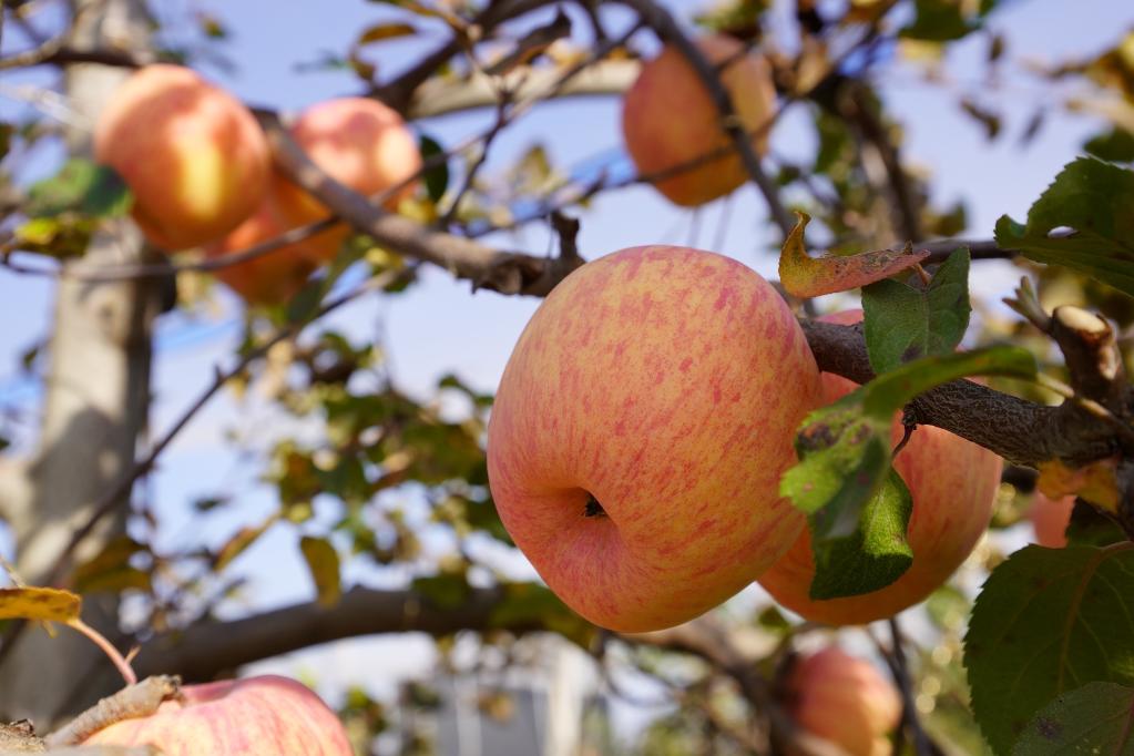 Detalhe das maças de Nangou, distrito de Ansai, Província de Shaanxi, noroeste da China, em 24 de outubro de 2023. (Xinhua/Sergio Gómez)