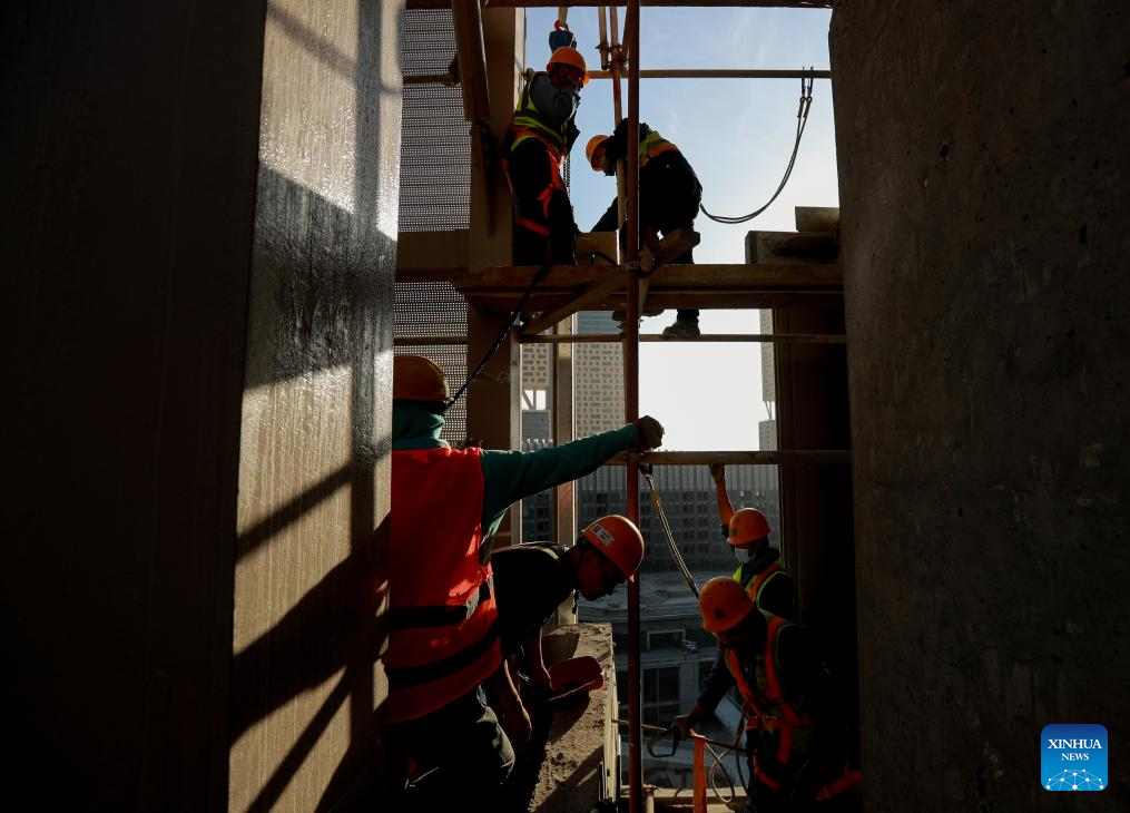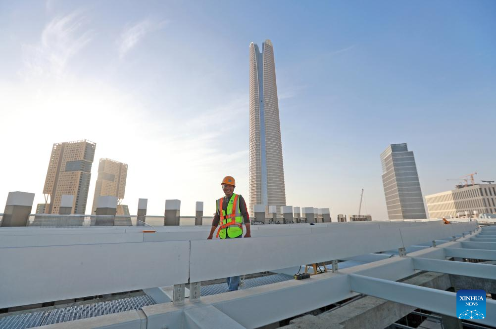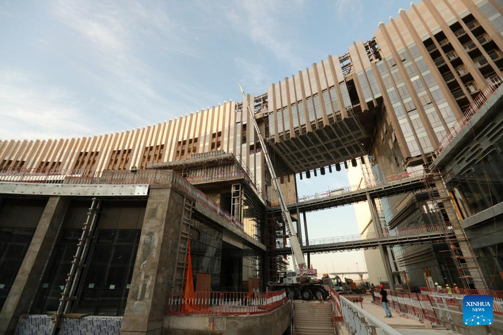 Na primavera do ano que vem, todas as fachadas do DCC estarão completamente instaladas. O DCC continuará espalhando a glória da amizade entre China e Egito, servindo como símbolo duradouro da Iniciativa do Cinturão e Rota. (Li Binghong/Filial egípcia da China State Construction Engineering Corporation/Divulgação via Xinhua)