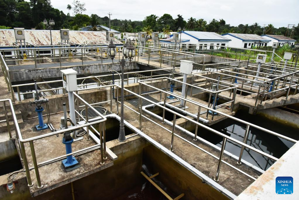 Foto tirada em 16 de março de 2022 mostra a estação de tratamento de água potável de Lobe, na região sul de Camarões. (Foto por Kepseu/Xinhua)