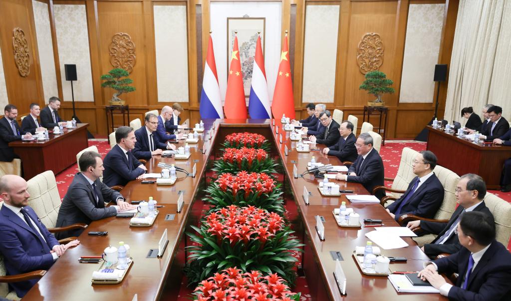 Beijing, 28 mar (Xinhua) -- O primeiro-ministro chinês, Li Qiang, realizou conversações com o primeiro-ministro holandês, Mark Rutte, na quarta-feira em Beijing, prometendo promover o desenvolvimento saudável e estável dos laços bilaterais.