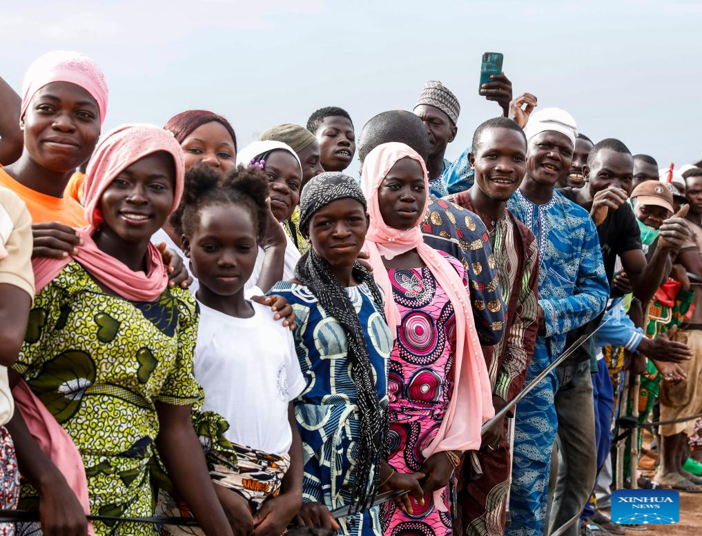 Foto tirada em 25 de maio de 2024 mostra pessoas curtindo a primeira edição da "Superliga da Aldeia" africana em Parakou, Benin. (Xinhua/Li Yahui)