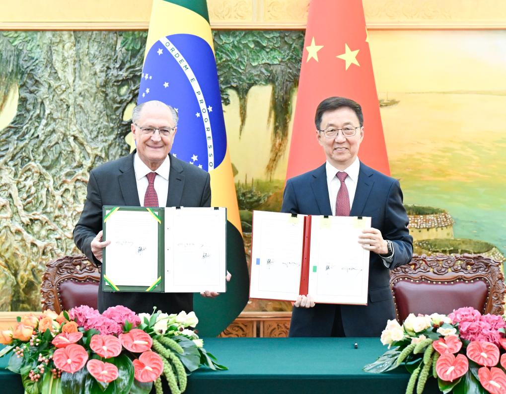 Han e Alckmin ouviram os diversos temas compartilhados pelos chefes dos departamentos relevantes dos dois países sobre comércio, nova industrialização, relações políticas, agricultura e pecuária, políticas financeiras e infraestrutura, entre outros, bem como os relatórios de trabalho de 11 subcomitês e do Conselho Empresarial China-Brasil, e elogiaram os resultados positivos alcançados na cooperação em vários campos.