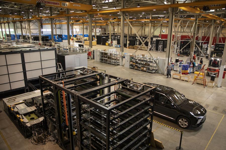 Foto tirada em 18 de março de 2024 mostra a planta da NIO Power Europe em Biatorbagy, Hungria. (Xinhua/Zhang Fan)