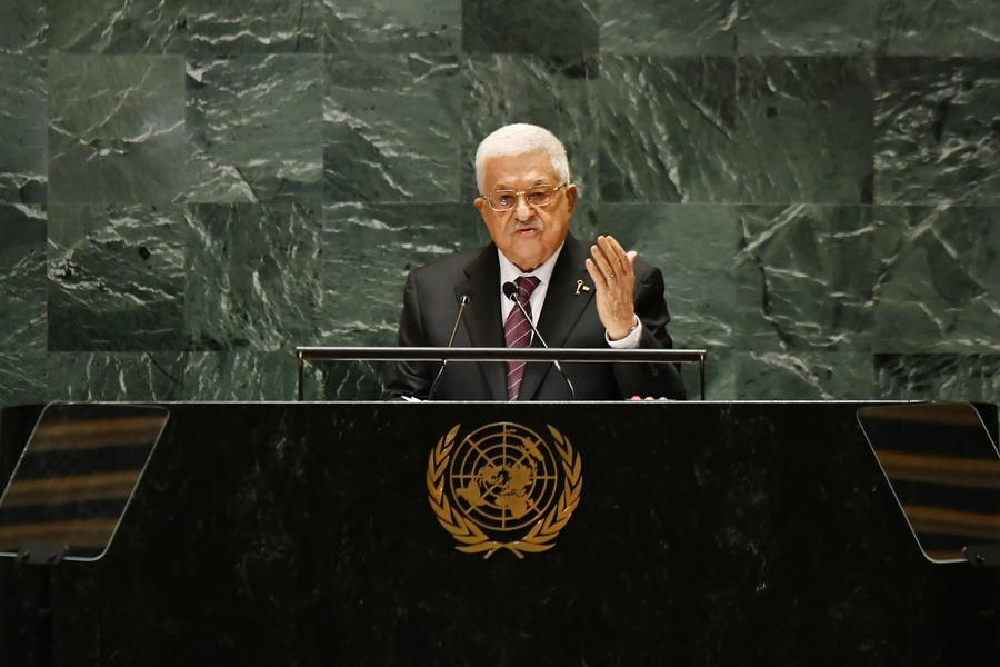 Presidente palestino Mahmoud Abbas faz discurso no Debate Geral da 79ª sessão da Assembleia Geral das Nações Unidas (AGNU) na sede da ONU em Nova York, no dia 26 de setembro de 2024. (Xinhua/Li Rui)