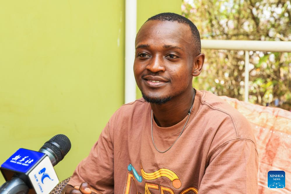 Cabrel Domche fala em entrevista à Xinhua, em Yaoundé, capital de Camarões, no dia 13 de fevereiro de 2025. (Xinhua/Kepseu)