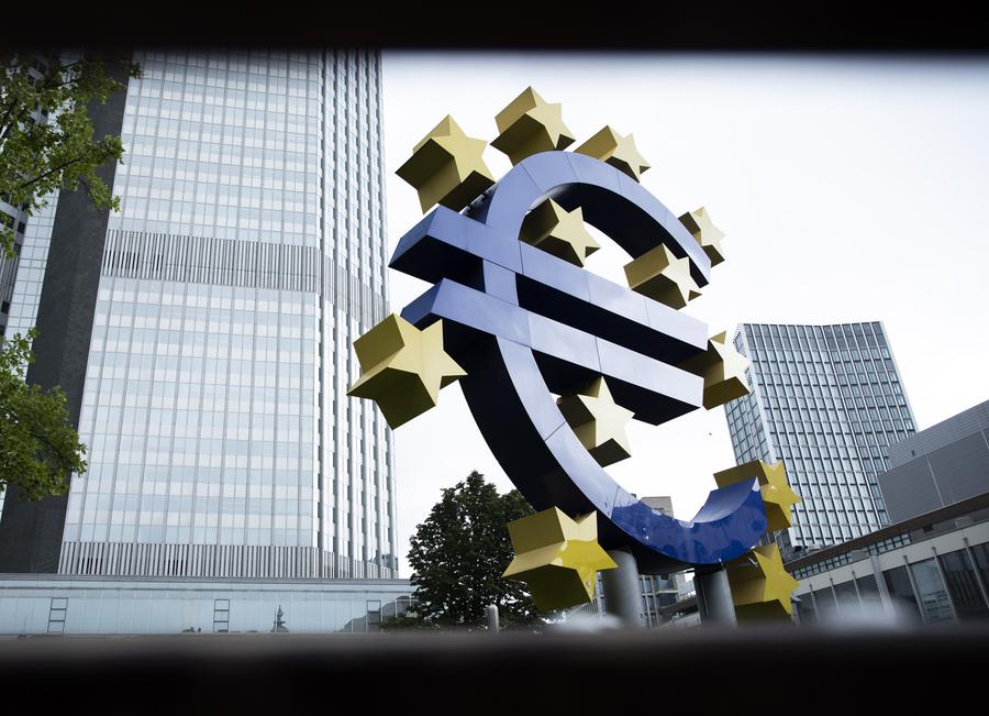 Foto tirada em 27 de julho de 2023 mostra a Escultura do Euro em Frankfurt, Alemanha. (Xinhua/Zhang Fan)