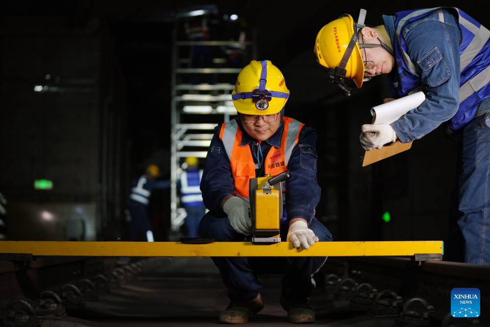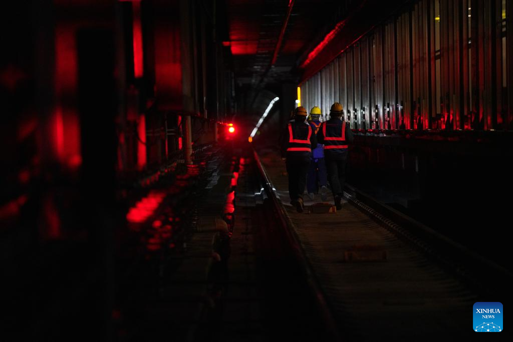 Eletricitários patrulham túneis do metrô de Harbin durante a noite para garantir operação estável-Xinhua
