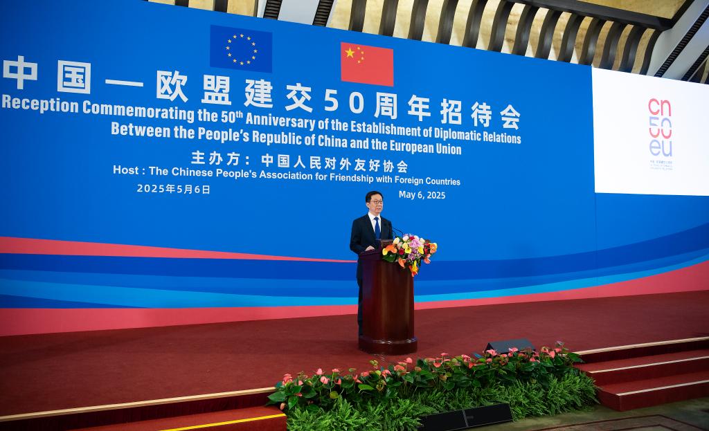 Han fez as observações ao discursar em uma recepção para comemorar o 50º aniversário dos laços diplomáticos entre a China e a UE.