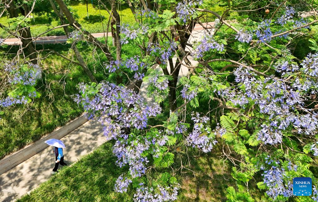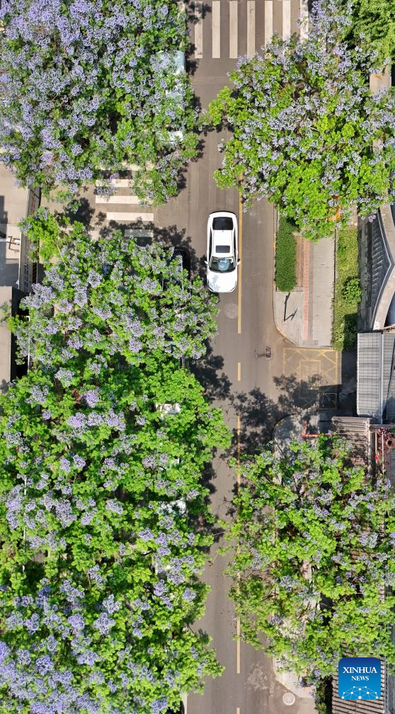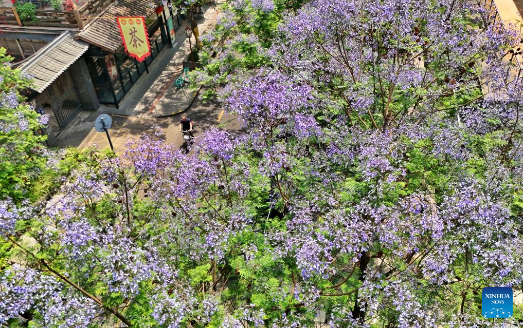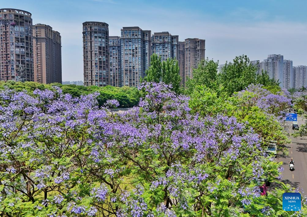 Flores de jacarandá colorem as ruas de Chengdu de lilás-Xinhua