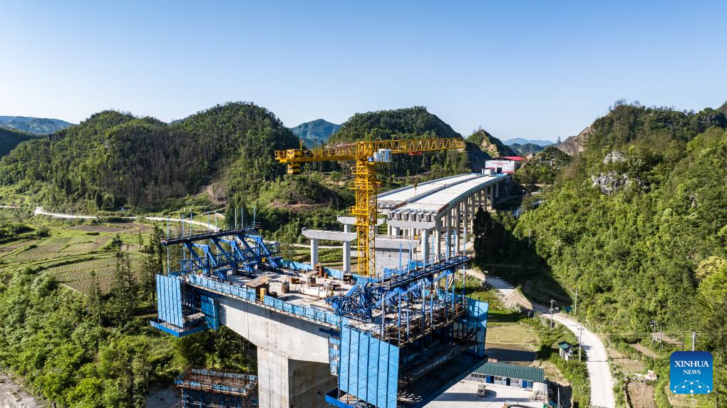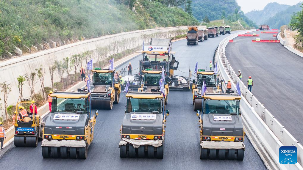 Segue em andamento a construção da via expressa Guiyang-Pingtang em Guizhou, no sudoeste da China-Xinhua