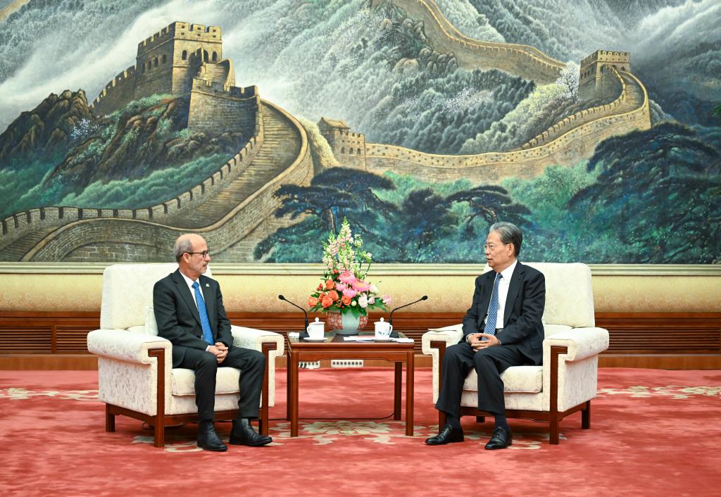 Beijing, 15 mai (Xinhua) -- O mais alto legislador da China, Zhao Leji, reuniu-se com Rolando Miguel González Patricio, presidente do Parlamento Latino-Americano e Caribenho (Parlatino), em Beijing na quarta-feira.