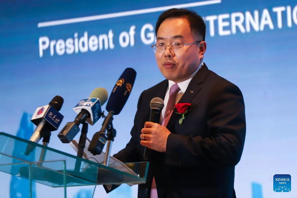 Wei Haigang, presidente da GAC International, fala em um evento de lançamento da marca organizado pela montadora chinesa Guangzhou Automobile Group Co., Ltd (GAC Group) em Adis Abeba, capital da Etiópia, em 17 de maio de 2025. A montadora chinesa Guangzhou Automobile Group Co., Ltd (GAC Group) apresentou dois de seus modelos de veículos elétricos (EV) ao mercado etíope, marcando a entrada da marca chinesa no país da África Oriental. (Xinhua/Michael Tewelde)