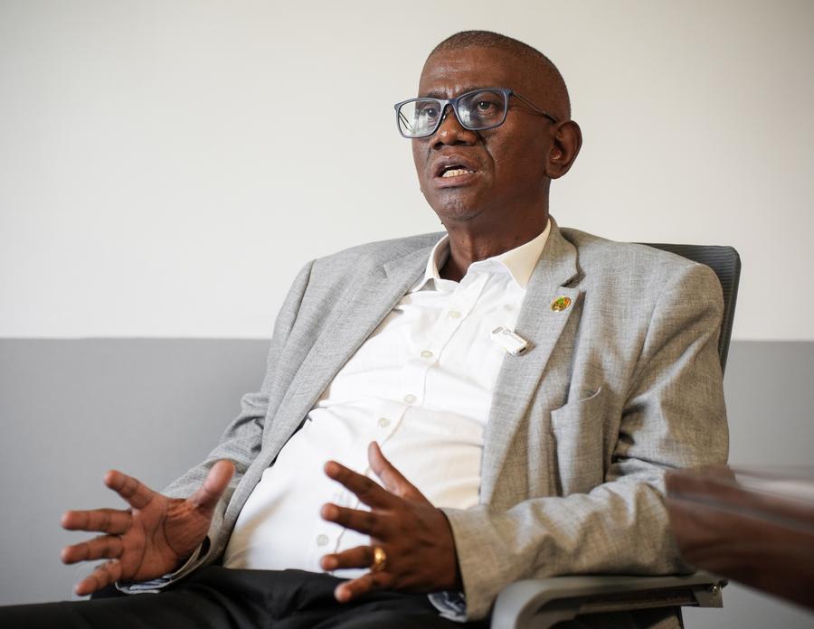 Michel Anondraka, diretor-geral de agricultura e pecuária do Ministério da Agricultura e Pecuária de Madagascar, fala durante uma entrevista à Xinhua em Analamanga, Madagascar, em 27 de março de 2025. (Xinhua/Li Yahui)