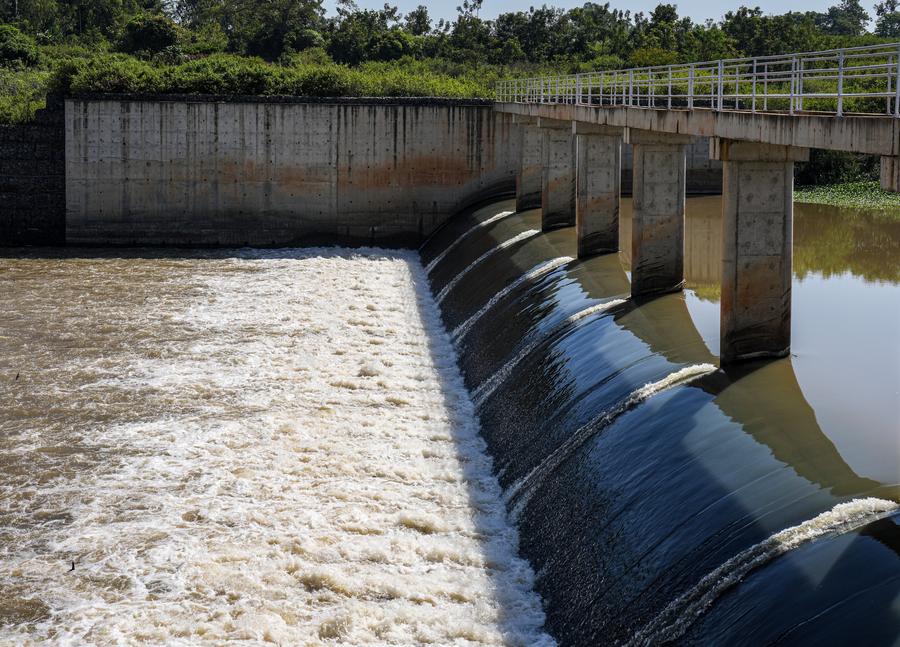 Foto tirada em 20 de fevereiro de 2025 mostra a estrutura de entrada de água do Projeto de Desenvolvimento de Irrigação de Baixo Nzoia no Condado de Siaya, Quênia. (Xinhua/Li Yahui)