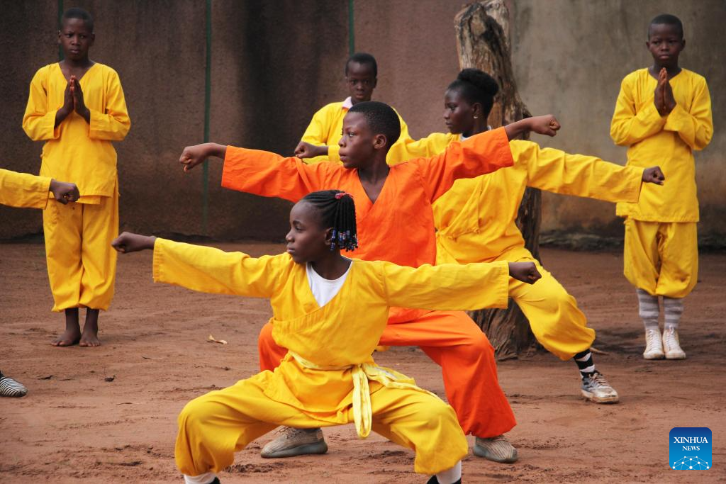 Cotonou, 19 mai (Xinhua) -- Em um modesto, porém vibrante clube de artes marciais em Akpro-Misserete, uma cidade a cerca de 40 quilômetros a nordeste de Cotonou, capital econômica do Benin, o som rítmico dos pés batendo no chão ecoa em sincronia com o grito agudo e estrondoso de "Hai-Hah!".