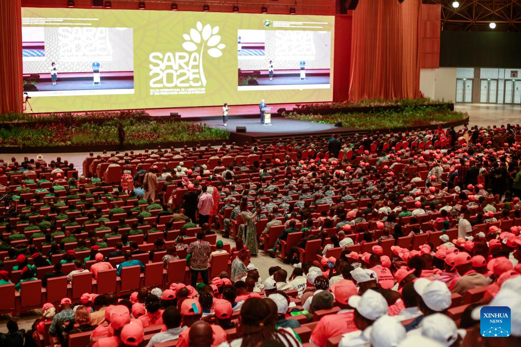 Pessoas participam da cerimônia de abertura da 7ª edição da Exposição Internacional de Agricultura e dos Recursos Animais (SARA 2025) no Centro de Exposições de Abidjan, Abidjan, Costa do Marfim, no dia 23 de maio. (Foto por Laurent Idibouo/Xinhua)