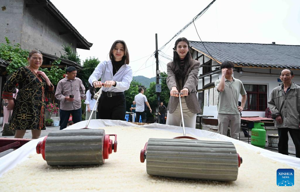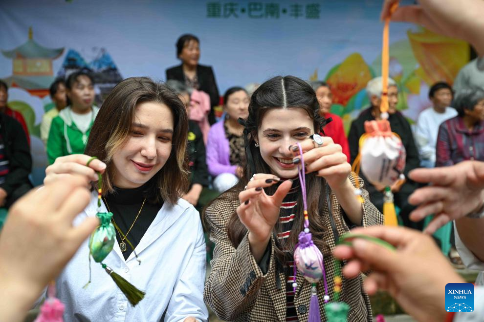 Estudantes internacionais participam de atividade cultural antes do Festival do Barco do Dragão em Chongqing-Xinhua