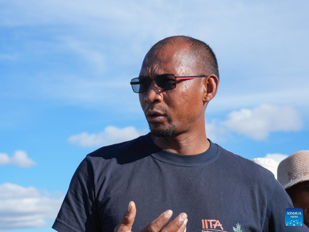 Ramboasalama Anolalaina Ratsina, especialista do Ministério da Agricultura de Madagascar, fala durante entrevista à Xinhua em Anosiarivo, Madagascar, no dia 25 de março. 2025. (Xinhua/Li Yahui)