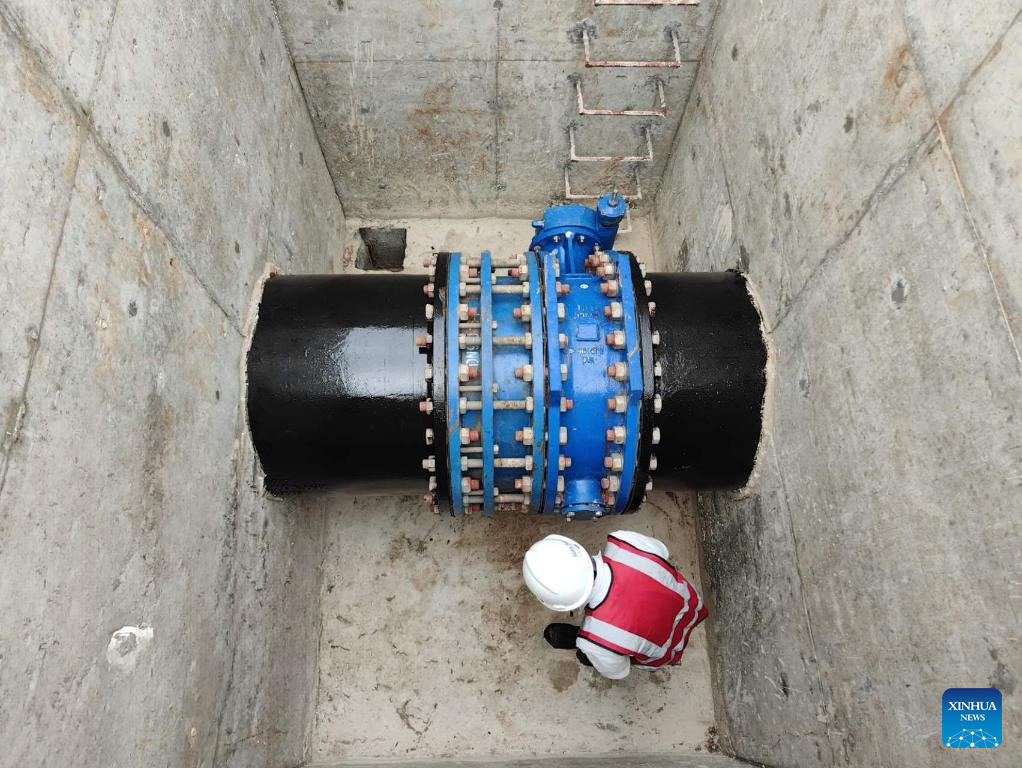 Foto de arquivo tirada em 20 de janeiro de 2024 mostra trabalhador verificando tubulação de transmissão de água do projeto da Rede de Abastecimento de Água da Grande Abuja, em Abuja, Nigéria. O presidente nigeriano, Bola Tinubu, encomendou um projeto de abastecimento de água com auxílio da China em Abuja, a capital do país, e prometeu compromisso com uma infraestrutura sustentável que melhore a vida dos cidadãos. Executada pela empresa chinesa CGCOC GROUP Co., Ltd., a Rede de Abastecimento de Água da Grande Abuja, com os Circuitos 1, 2, 5 e 6, orçada em 470 milhões de dólares americanos, foi inaugurada na segunda-feira. (CGC Nigéria/Divulgação via Xinhua)