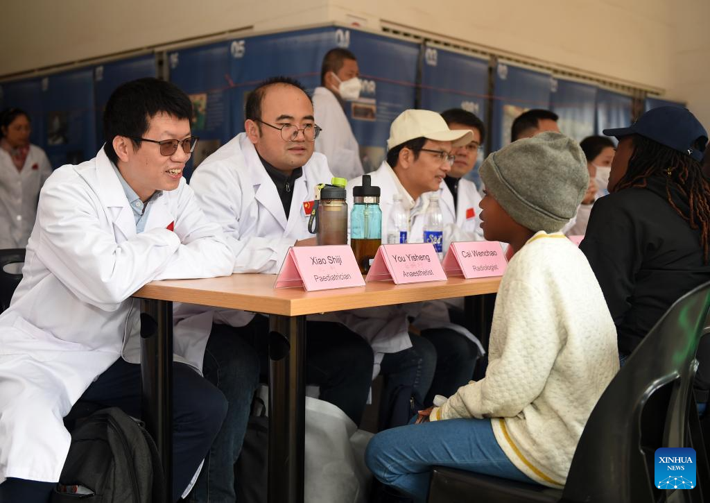 O líder comunitário Lazarus Ikalafeng comemorou a chegada da equipe médica chinesa e seu serviço de extensão, que incentiva as pessoas a priorizarem sua saúde, indo consultar um médico.