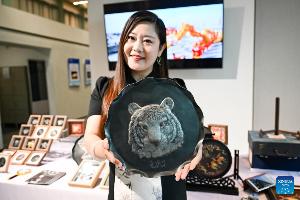 O evento de promoção cultural e turística "Explorar Hebei com o Patrimônio Cultural Imaterial" teve uma exposição de artesanato tradicional da província, incluindo baixos-relevos complexos, recortes em papel e cerâmica, além de apresentação cultural com demonstração de ópera tradicional chinesa.