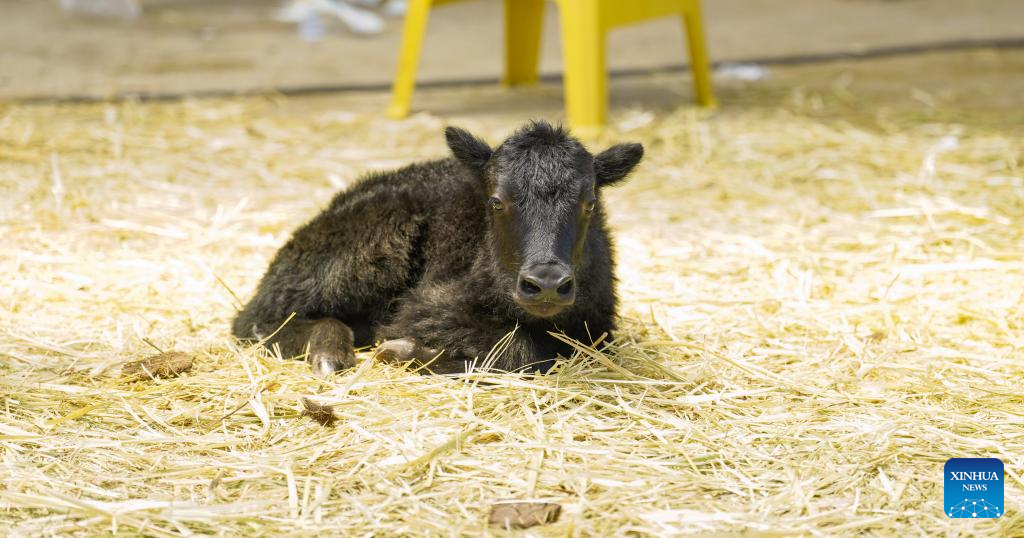 This photo taken on July 11, 2025 shows a cloned yak at a yak breeding base in Damxung County, southwest China's Xizang Autonomous Region. A cloned yak was born via caesarean section on Thursday at a yak breeding base in Damxung County, southwest China's Xizang Autonomous Region, researchers have said.