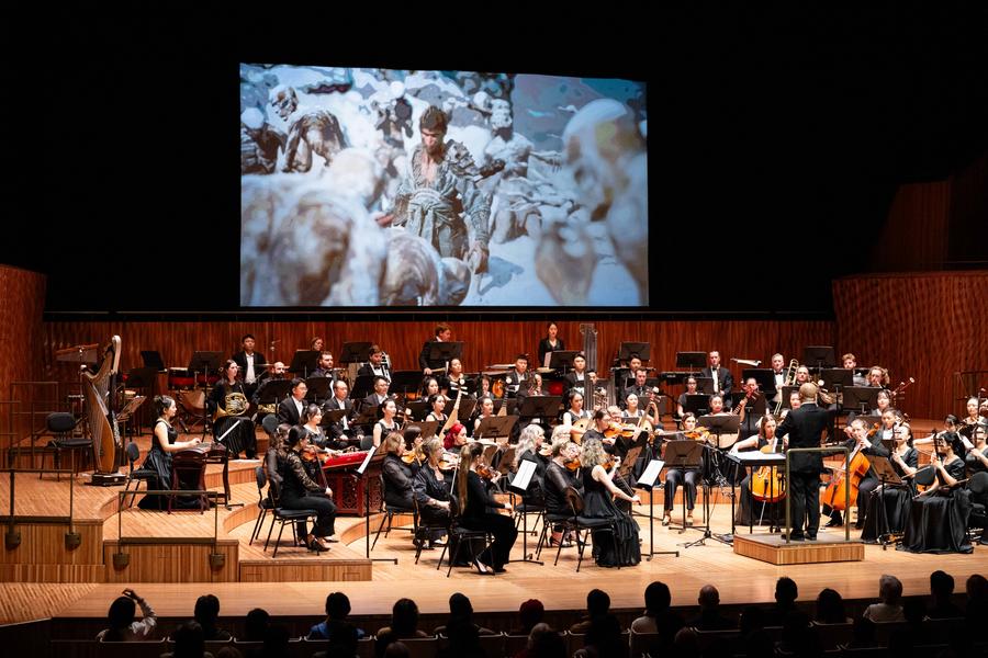 Músicos da Orquestra Chinesa de Guizhou e da Orquestra da Austrália se apresentam no concerto "Folk Reimaginado: Oriente em Sinfonia" na Ópera de Sydney, Austrália, no dia 7 de julho de 2025. (Evento por Ryan Maxwell/Divulgação via Xinhua)