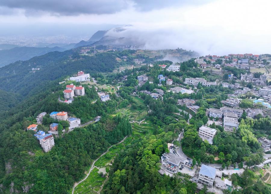 Foto aérea de drone mostra vista do resort turístico nacional de Kuliang, no distrito de Jin'an, em Fuzhou, província de Fujian, no sudeste da China, em 24 de junho de 2024. (Xinhua/Lin Shanchuan)