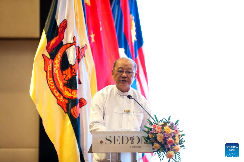 O secretário-geral do Centro Associação das Nações do Sudeste Asiático (ASEAN)-China (ACC, na sigla em inglês), Shi Zhongjun, discursa no Fórum de Segurança e Proteção do Turismo ASEAN-China em Rangum, Mianmar, em 25 de agosto de 2025. O fórum foi organizado conjuntamente pelo ACC, pelo Ministério da Hotelaria e Turismo de Mianmar e pelo Centro Integrado de Cooperação em Segurança e Aplicação da Lei Lancang-Mekong (LMLECC, na sigla em inglês). O foco foi a construção de uma barreira de segurança sólida, o avanço do desenvolvimento e da prosperidade do turismo regional e a busca por medidas práticas para enfrentar os desafios. (Foto por Myo Kyaw Soe/Xinhua)