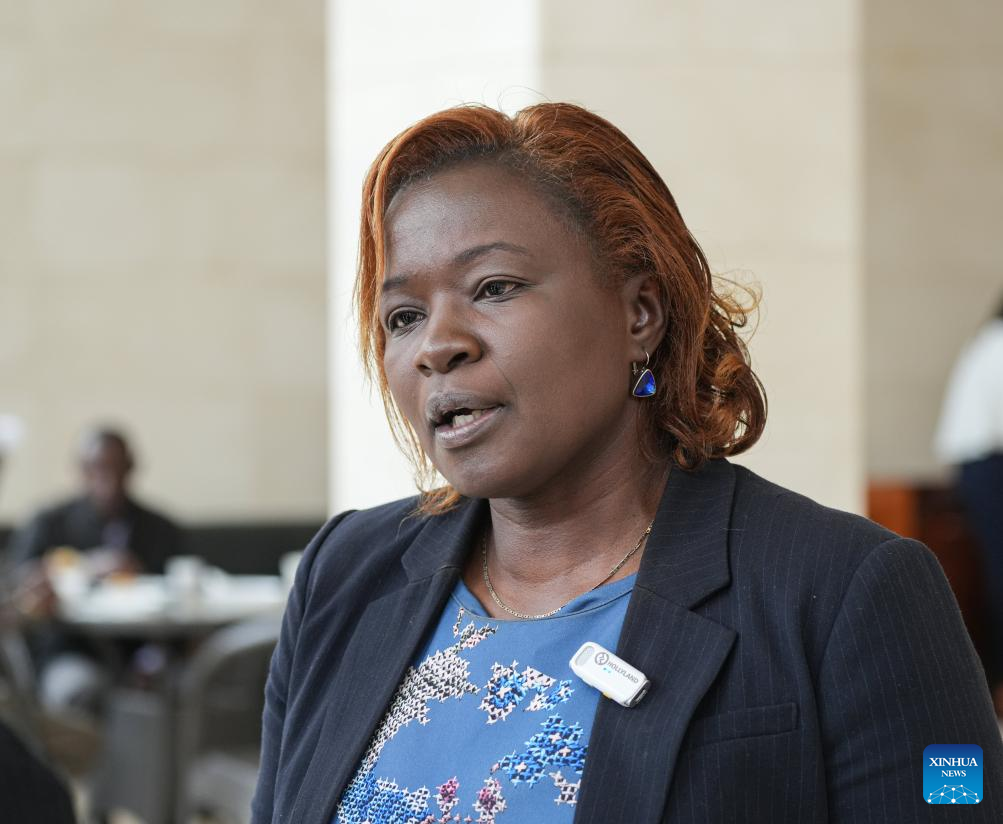 Rosalia Omungo, diretora-executiva da Associação de Editores do Quênia, concede entrevista à Xinhua em Nairóbi, Quênia, em 26 de agosto de 2025. A oficina de treinamento, com duração de meio dia, ocorreu na terça-feira em Nairóbi, organizada pelo Escritório Regional da Agência de Notícias Xinhua para a África.