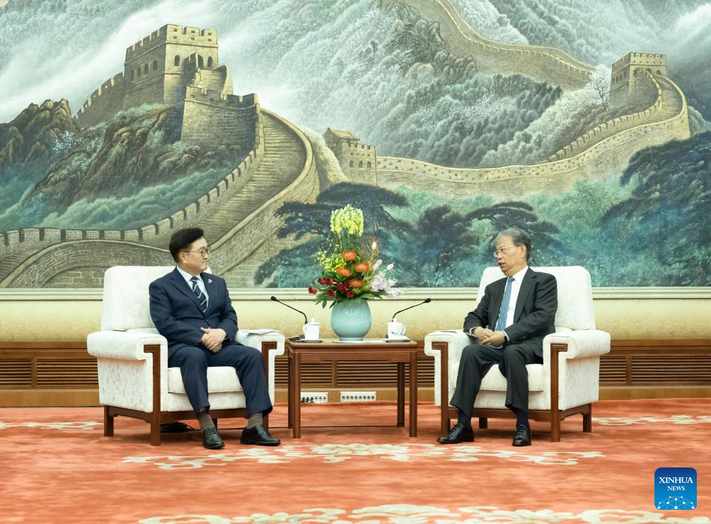 Beijing, 5 set (Xinhua) -- O mais alto legislador da China, Zhao Leji, reuniu-se em Beijing nesta quinta-feira com o presidente da Sérvia, Aleksandar Vucic, com o presidente do Vietnã, Luong Cuong, e com o presidente da Assembleia Nacional da Coreia do Sul, Woo Won-shik, respectivamente.